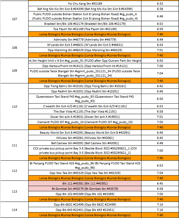 Home to Work Weekdays Morning 0740hrs Arrival @ Lonza November 04, 2025 05:14 Updated *Please note that the timings above are estimations. Check the SwatBiz app for more accurate timings.*