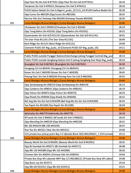 Home to Work All Day Evening 1940hrs Arrival @ Lonza (Shift A2) January 19, 2026 07:45 Updated *Please note that the timings above are estimations. Check the SwatBiz app for more accurate timings.*